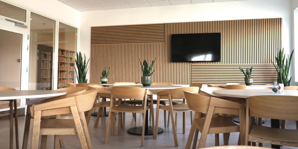 Explore our real wood wall panels. Our woods are sourced from Denmark and are completely Class A fire rated.